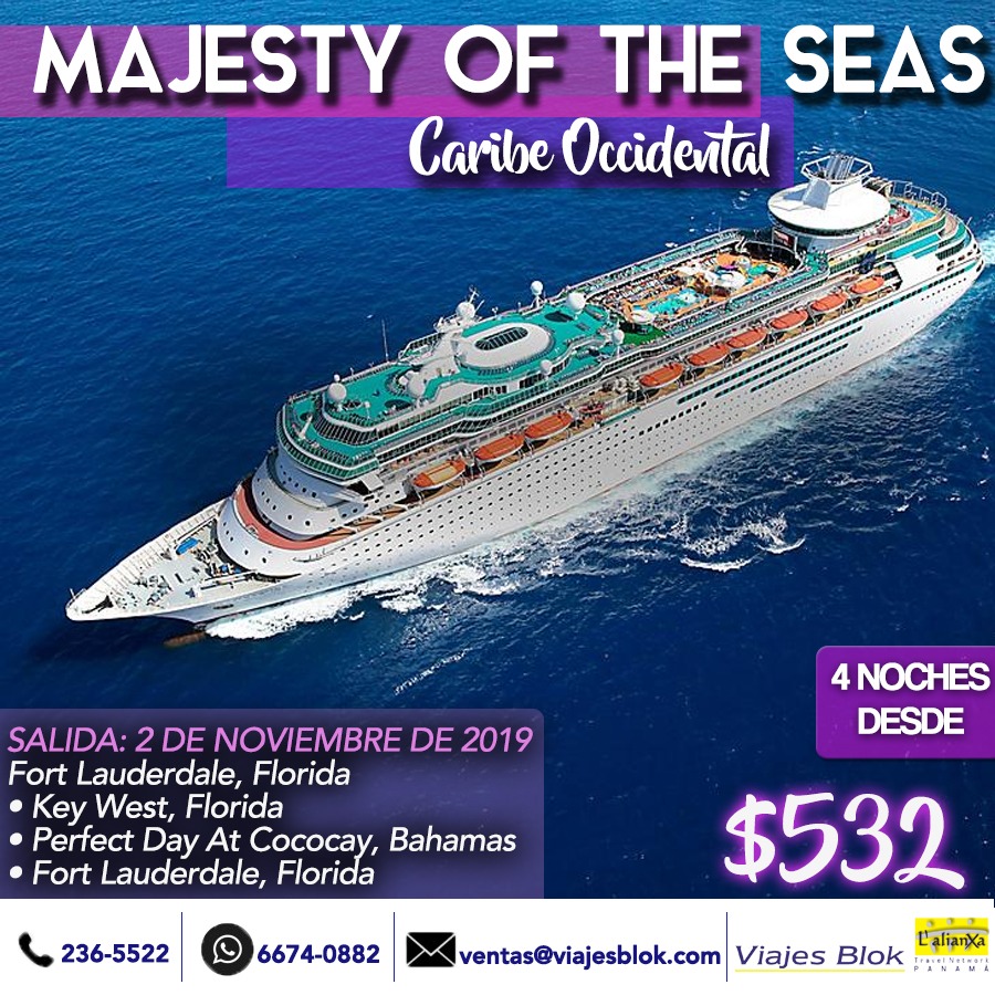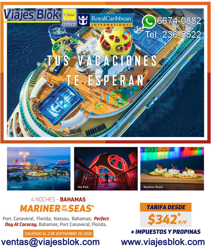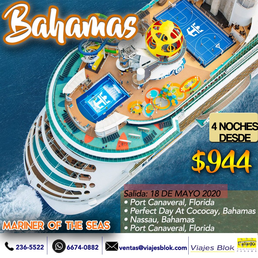 Más Información4 noches - Bahamas, MARINER OF THE SEAS. Saliendo el 2 de Septiembre del 2019.